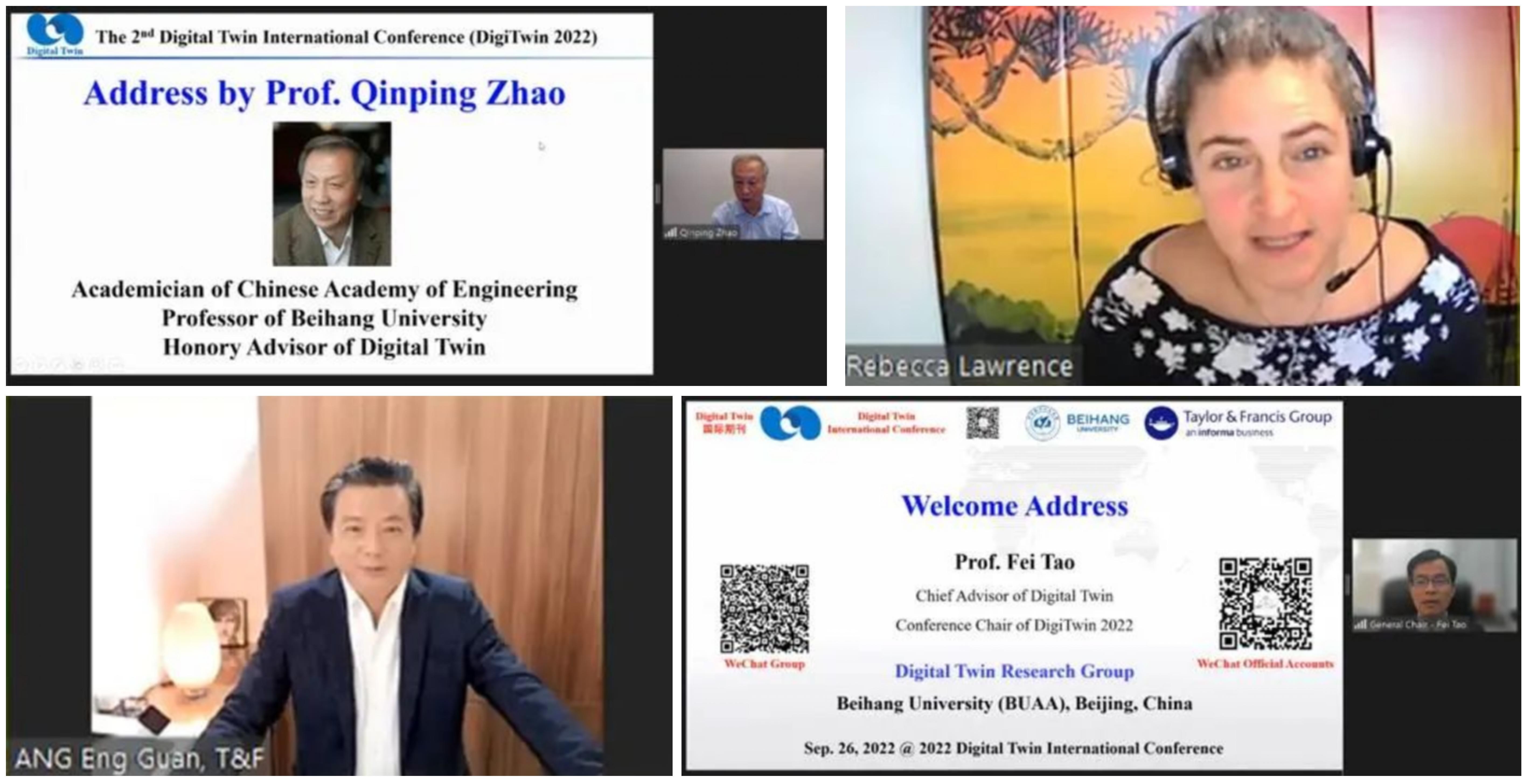 Ms. Rebecca Lawrence, General Manager of F1000, Taylor & Francis Publishing Group; Mr. Hong Yingyuan, President of Taylor & Francis Group China; and Professor Fei Tao from Beihang University, Chairman of DigiTwin 2022 Conference, Chief Advisor of the Digital Twin journal, delivered their welcome addresses, respectively.