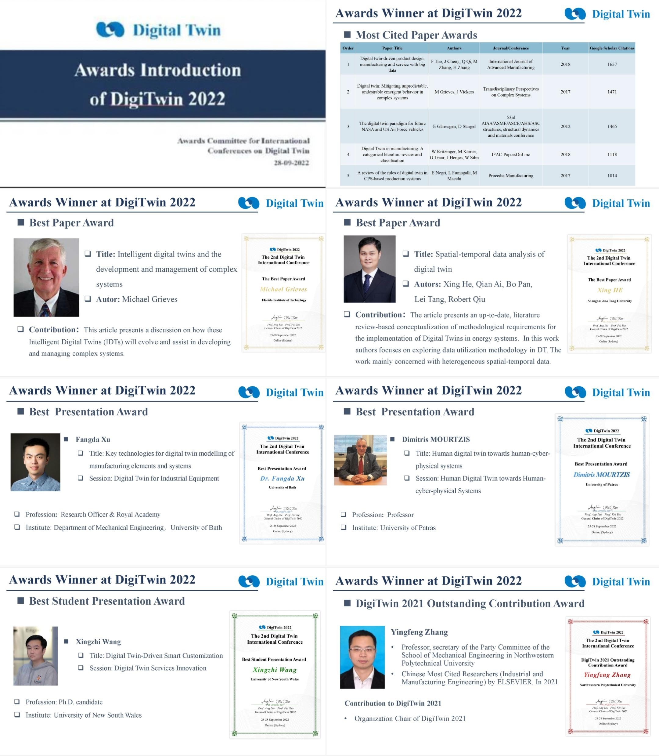 Center on hot topics and emerging trends in the field of digital twin, DigiTwin 2022 brought renowned scholars worldwide together to share the latest scientific research advancements, discuss academic communications and collaborations on technological frontiers, and promote the integrated development in the field of digital twin.