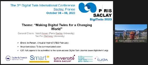 Professor Nabil Anwer from Paris-Saclay University provided a preview of the third Digital Twins International Conference (DigiTwin 2023). The theme of DigiTwin 2023 is “Making Digital Twins for a Changing World,” and it will be held in Paris, France, from October 4th to 6th, 2023. Experts and scholars are warmly invited to attend and participate in the conference.